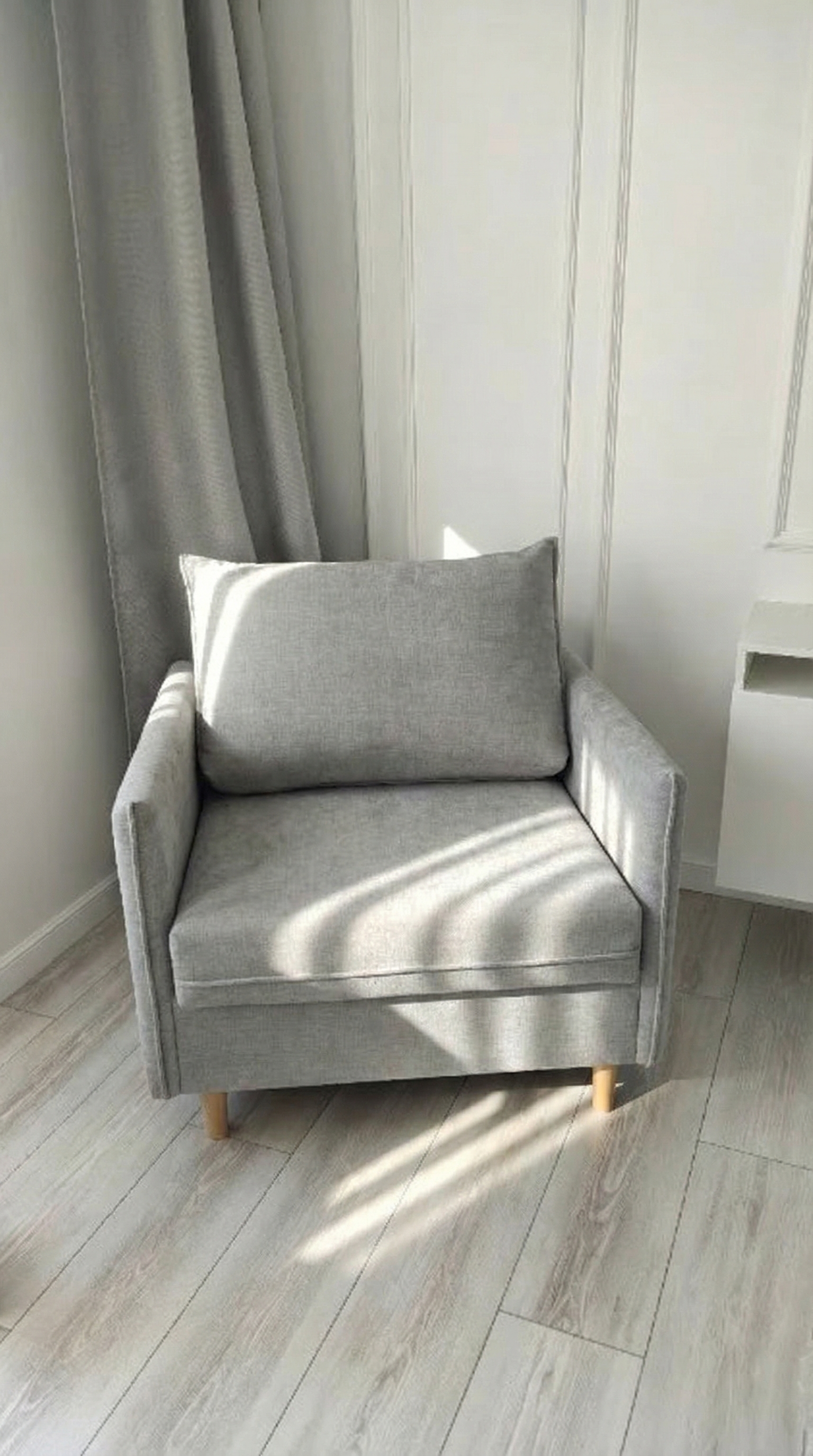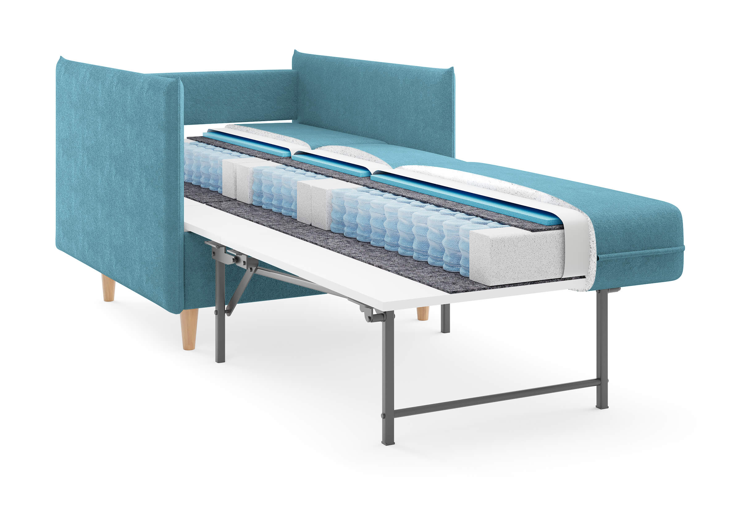 Высокие опоры из натурального дерева. Просвет над полом способствует легкой уборке под диваном, в том числе роботом-пылесосом